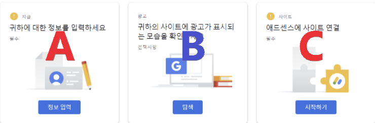 C. 애드센스 사이트에 연결 > 링크를 확인 후, 검토하기 신청 (필수) |