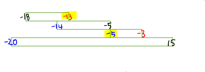 정렬하면 [-18, -13], [-14, -5], [-5, -3], [-20, 15]가 됩니다.
